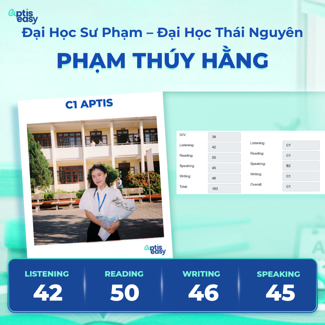 Hơn 10.000 học viên trên khắp cả nước đã đồng hành cùng Aptis Easy và để lại những trải nghiệm chân thực sau khi thi thử. Hãy cùng lắng nghe chia sẻ của các bạn để hiểu rõ hơn hành trình luyện thi với chúng tôi.
